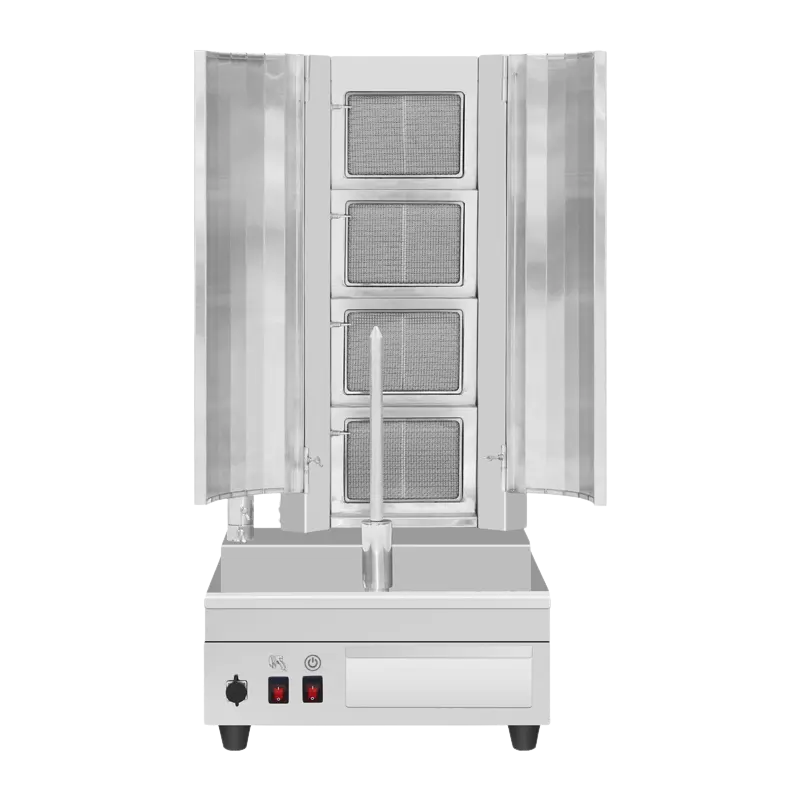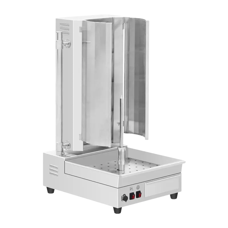 Standard 4-Burner Gas Kebab Machine Reliable performance at a competitive price. Same powerful ceramic burner technology and AGA certification in a value-focused package. Technical Specifications: Gas Type: LPG or Natural Gas options available Burners: Ceramic burners with wire mesh technology Ignition: Independent ignition control Gas Consumption: 54 MJ/h Motor: 2.5 RPM rotating spit motor Electrical: 220-240V, 50/60Hz, 30W Construction: Food-grade stainless steel Certification & Compliance: AGA Certified Compliant with AS/NZS Standards What's Included: 4-Burner Kebab Machine Spare Motor Spare Burner BONUS Slicer